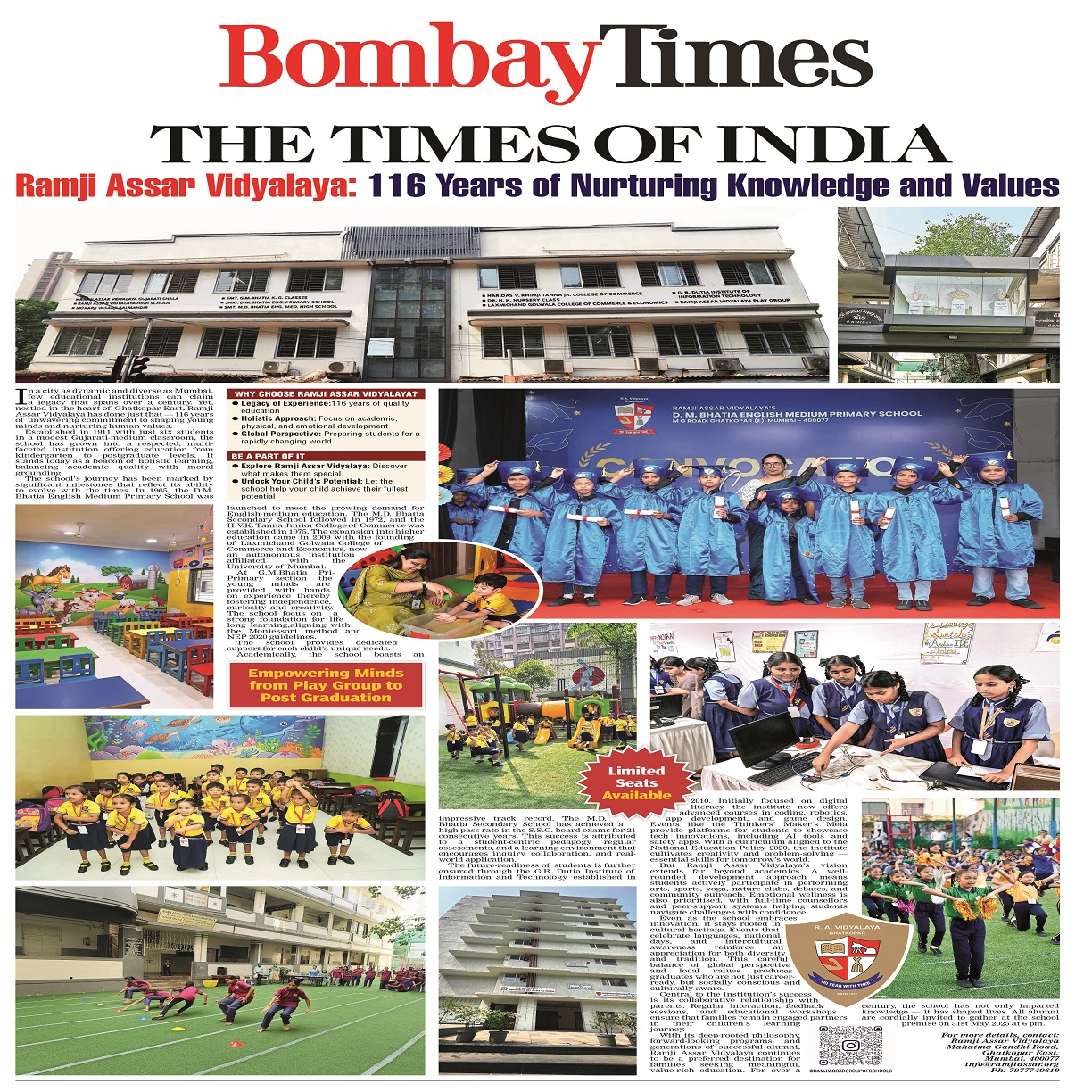 To nurture Visionaries for everlasting excellence and universal understanding."The roots of education are bitter, but the fruit is sweet." - Aristotle R.A.V Wadi Trust runs a group of educational instituitions that imparts education from Kindergarten to Post graduation. Ramji Assar Vidyalaya High School & H. V. K. Tanna Junior college of Commerce which functions under the aegis of RAV Wadi Trust specializes in imparting education to students.